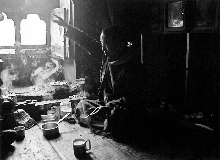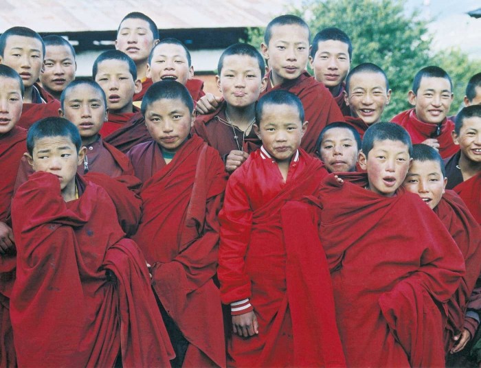Jautājumu “kas nepieciešams laimei?” man izdevās uzdot “dzīvajā”, dažas dienas staigājot pa kalniem. Neapgalvošu, ka atbildes pārsteigtu ar oriģinalitāti — vispirms apmēram divpadsmitgadīgi mūku puikas, ķiķinādami un slēpdamies viens otram aiz muguras, paziņoja, ka laimei nepieciešamas meitenes. Tas ir, sievietes. It kā viņi sekotu 16. gadsimta neprātīgā svētā Drukpas Kunleja idejai, ka domas prakse var būt arī meitenes un vīns, un vispār — klejot tukšumā var jebkurā virzienā, kāds tīk. Drukpa Kunlejs debesīs pacēlās kopā ar savu suni, kura zobs glītā kastītē tagad atrodas Butānas nacionālajā muzejā.