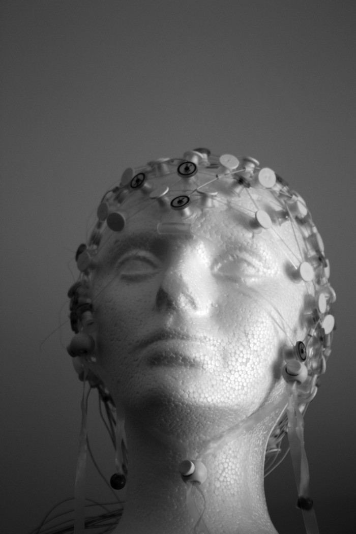 Galva ar sensoriem Dīna Reidina laboratorijā. Foto: Uldis Tīrons